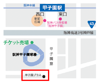 | 集合 | 14:50 甲子園歴史館 多目的ホール(甲子園プラス3階)下地図参照 受付は14:00より開始します。甲子園歴史館の入館券をお配りしますので、集合時間(14:50)までの間、見学することが可能です。(甲子園歴史館はPLUSエリアと球団エリアの2か所あります。別の日でも見学は可能です。) |