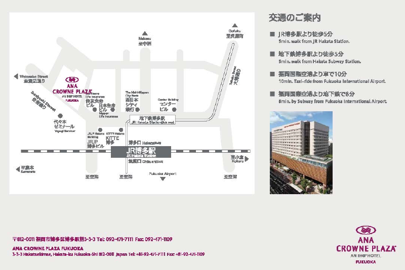 開催場所 | 〒812-0011 福岡市博多区博多駅前3-3-3 ANAクラウンプラザホテル福岡クラウングランドボールルームA・B TEL 092-471-7111 |
